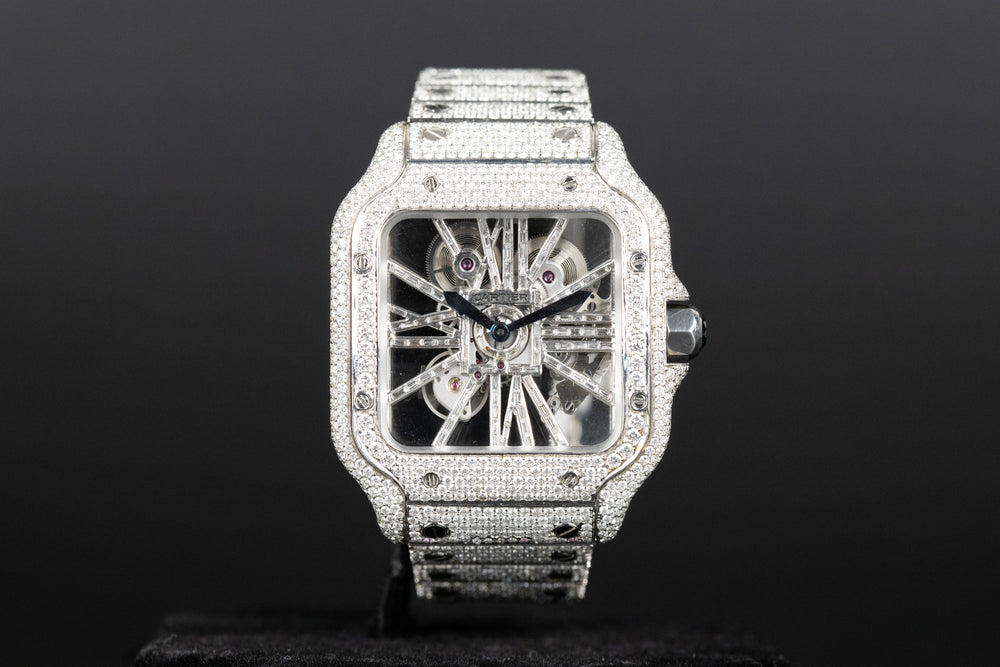 WHSA0015 Santos De Cartier Skeleton Dial Custom Diamond VVS Colorless