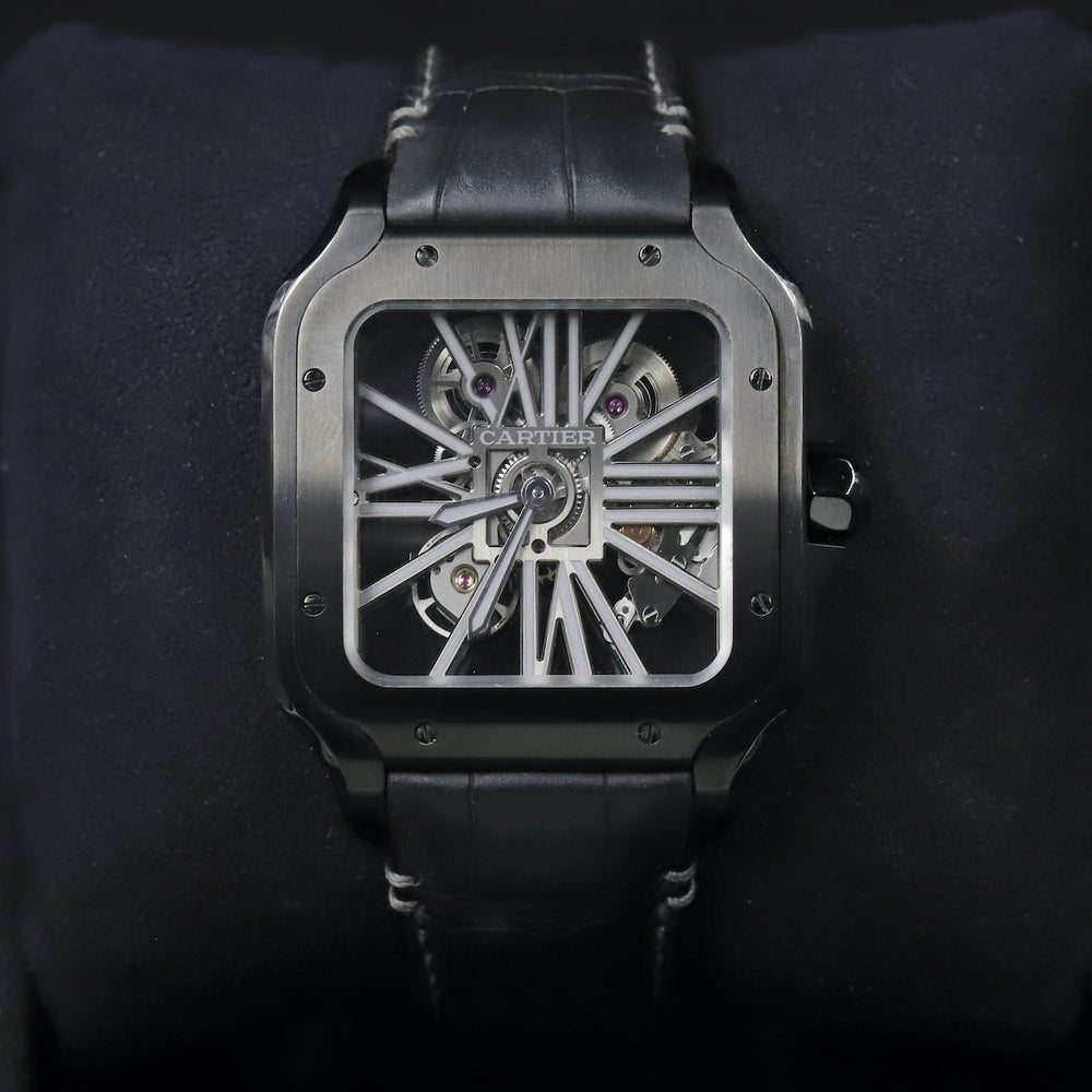 WSSA0039 Santos De Cartier Black ADLC Skeleton Dial