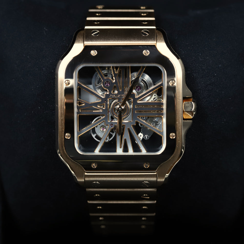 WHSA0008 Santos De Cartier Rose Gold Skeleton Dial