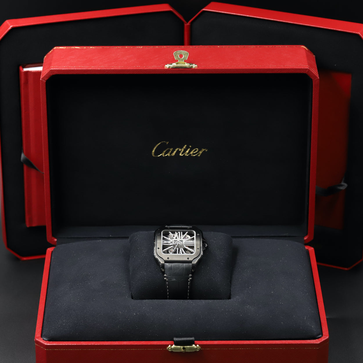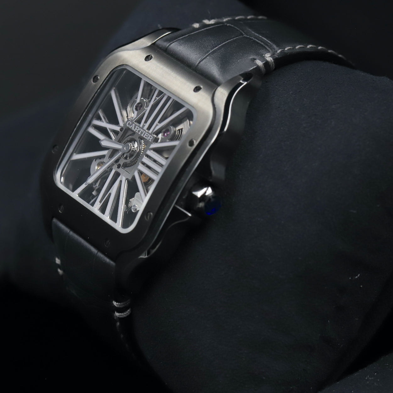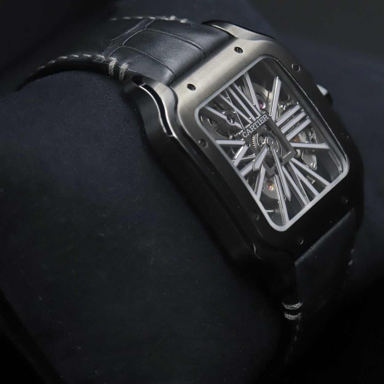 WSSA0039 Santos De Cartier Black ADLC Skeleton Dial